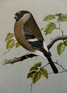 Artist Signed Print of a Bullfinch Hen presented in a cream 14" x 11" mount/mat.