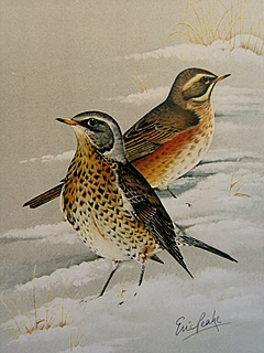 Artist Signed Print of a Redwing & Fieldfare presented in a cream 14" x 11" mount/mat.