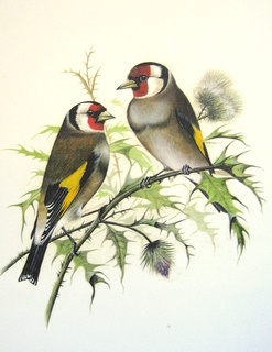 Artist Signed Print of Goldfinches presented in a cream 14" x 11" mount/mat.